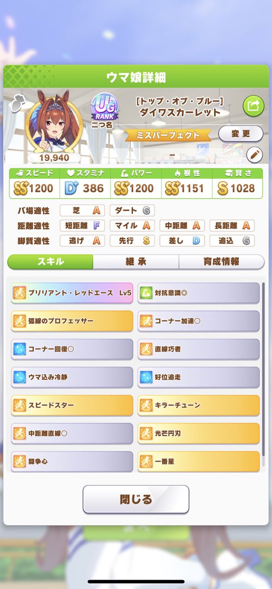 ワイもやが始めてもうそろ1年経ちます…959: 名無しのトレーナー 22/07/31(日) 22:23:25 ID:P5.aa.L11(S+が限界です…)964: 名無しのトレーナー 22/07/31(日) 22:24:06 ID:nm.d2.L16別にUG作るのが目的じゃないし(震え声967: 名無しのトレーナー 22/07/31(日) 22:24:19 ID:TJ.h9.L60下振れでもSS上振れしてUGはレース42戦くらい出て因子考えてやってれば必ず行くで968: 名無しのトレーナー 22/07/31(日) 22:24:27 ID:14.l5.L21ハリボテでいいならUG行けそうではある976: 名無しのトレーナー 22/07/31(日) 22:25:42 ID:Ah.aa.L28評価点育成のUGはやる意味あるかは置いておいてそんな難しいないから…961: 名無しのトレーナー 22/07/31(日) 22:23:42 ID:01.xf.L12新シナリオで今以上の育成できるとか想像つかん