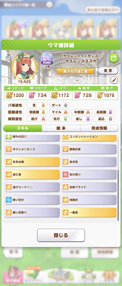 あと、根性育成は総じて金スキルにろくな物がない。ユキノのソムリエくらい。