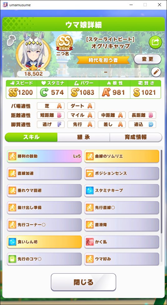短距離マイル姫冠ダートが主なの以外キャラはどいつもこいつも、この3つ欲しがりやがるんでマニー貯めてるついでに取れるなら取ったほうがいい。